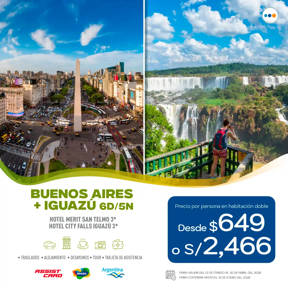 02 noches de alojamiento con desayuno en Buenos Aires.