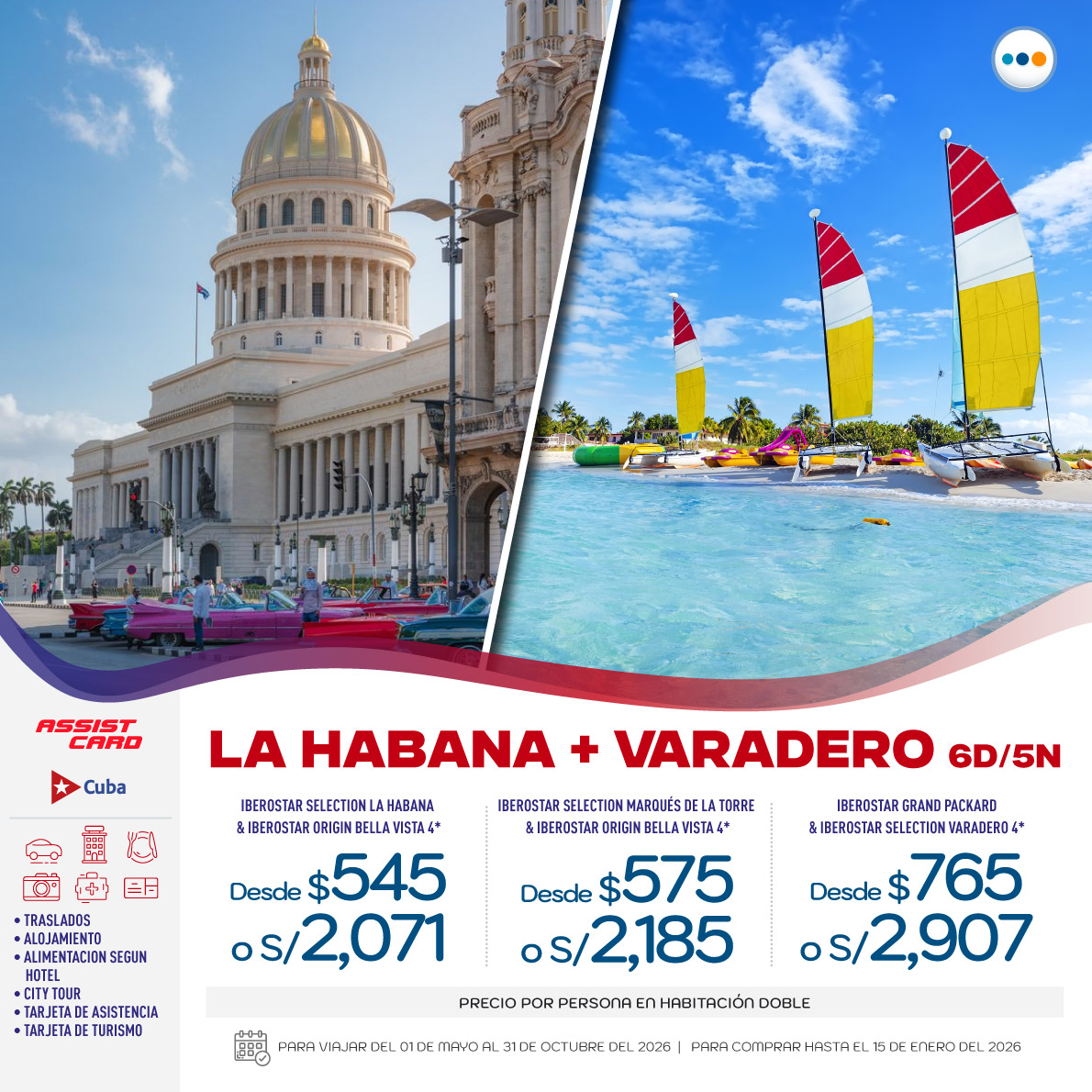 3 noches de alojamiento en el hotel a elegir – Varadero