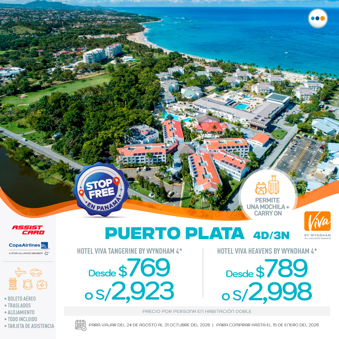 - Boleto aéreo vía Copa Airlines.